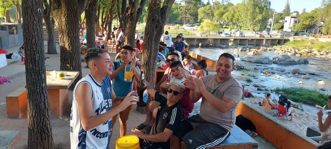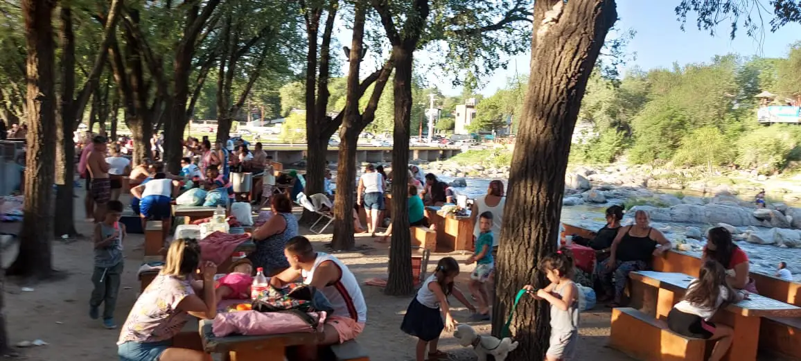 Toda la costanera oeste del río San Antonio a su paso por Carlos Paz se vio repleta de vehículos estacionados y de visitantes en las playas y espacios públicos.