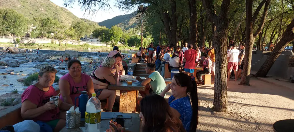 Los asadores ya no están, pero la gente llegó en colectivo, en auto o en moto, y se agolpó en la zona de las mesas ocupando también algún lugar en la playa.