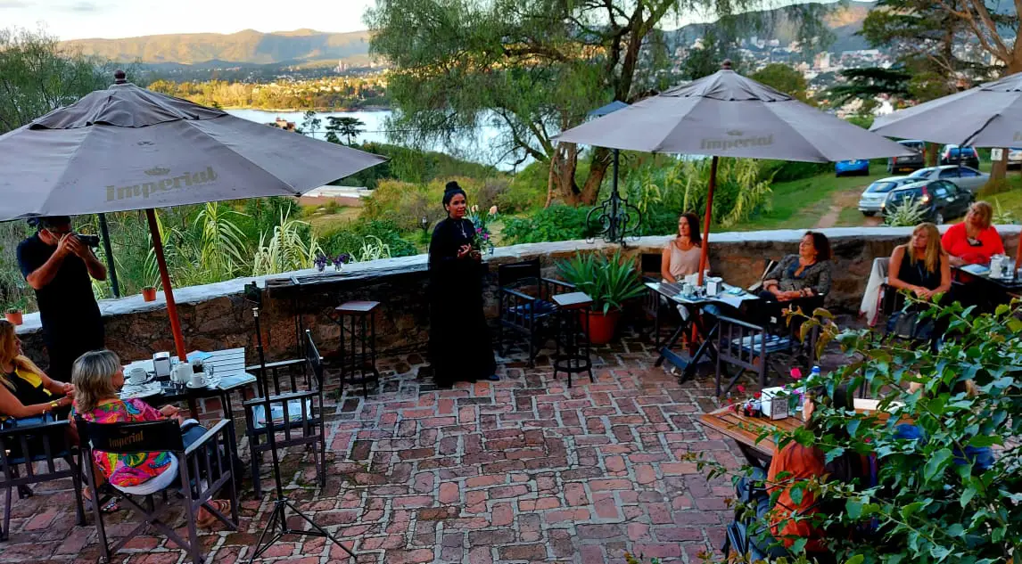 Las fotos apenas si reflejan la apacible pero intensa velada cultural, con el magnífico Lago San Roque de fondo… mientras caía la tarde a nuestras espaldas.