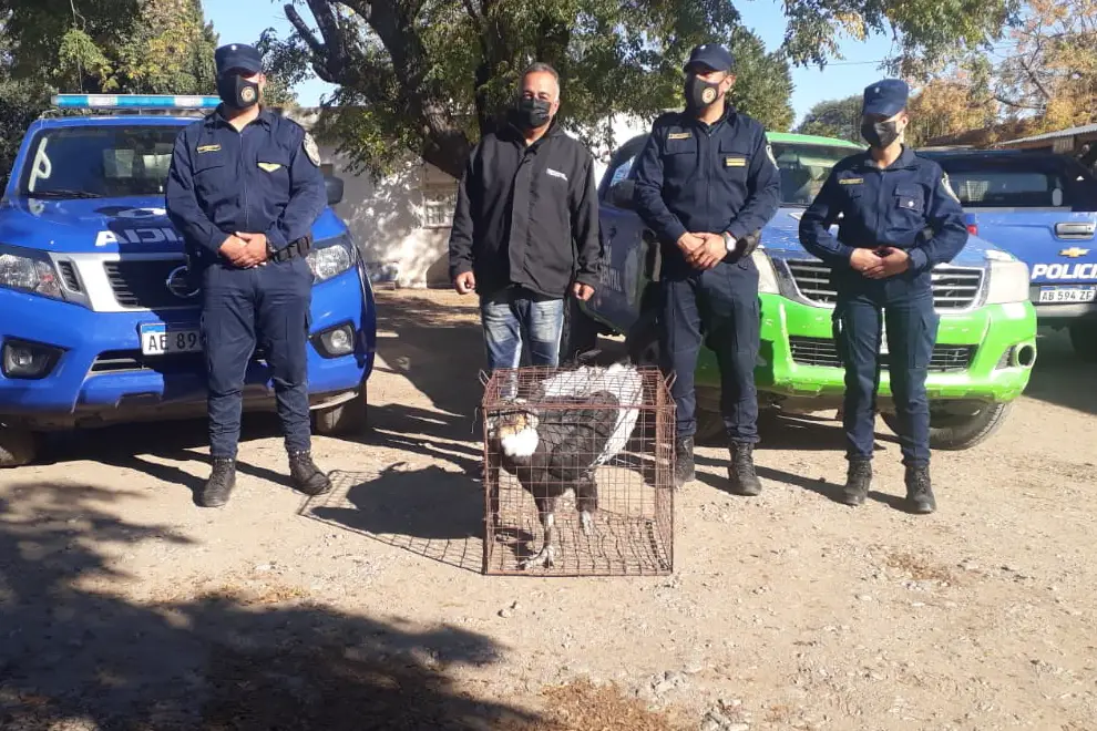 Personal de Policía Ambiental del Ministerio de Coordinación, junto con efectivos de la departamental San Javier de la Policía de la Provincia, rescataron un cóndor andino adulto que se encontraba en la vía pública sin poder volar.