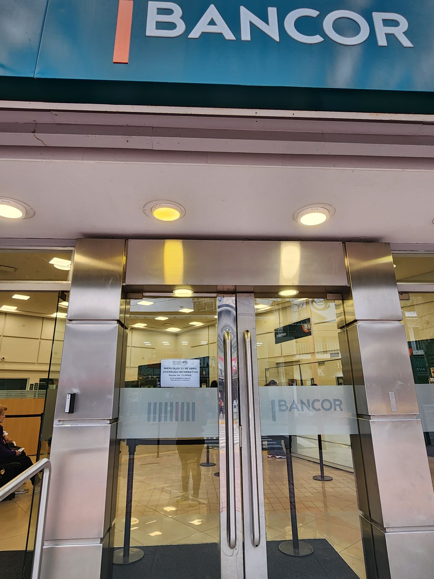 La asamblea fue de dos horas, de 11 a 13 horas, según expresa el cartel informativo que se dispuso en el ingreso al establecimiento bancario.