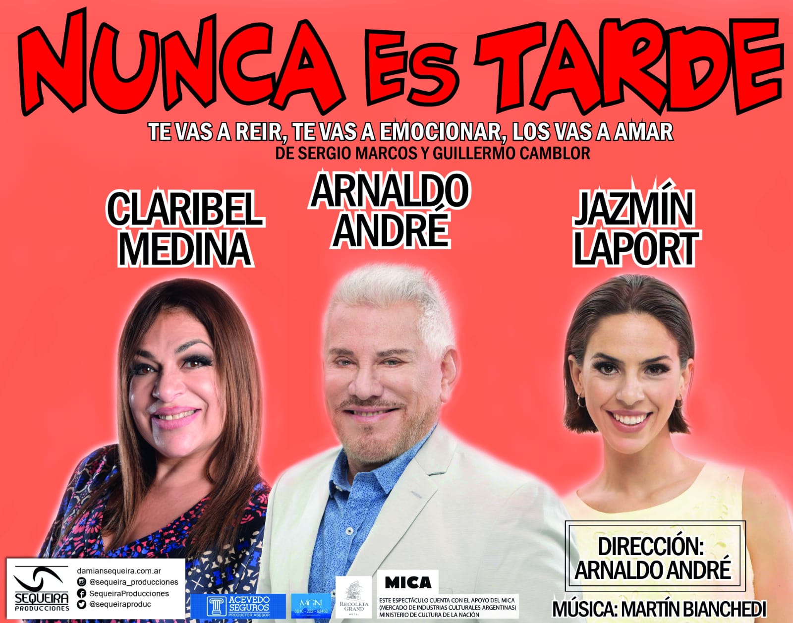 Además, la que también decidió suspender fue “Nunca Es Tarde”, obra integrada por Arnaldo André, Claribel Medina y Jazmín Laport, que se presentaría en la misma sala los fines de semana.