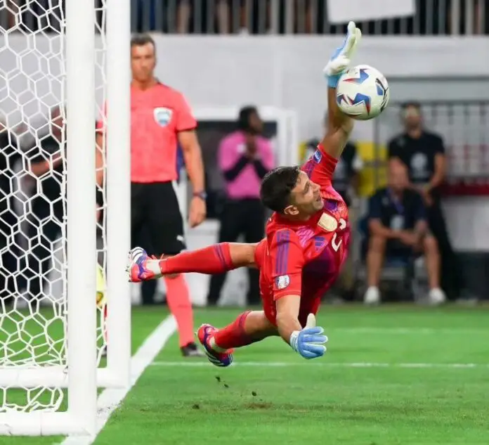La serie de penales comenzó con un tiro malogrado de Lionel Messi al que le siguieron las dos atajadas de Emiliano Martínez, el Dibu.