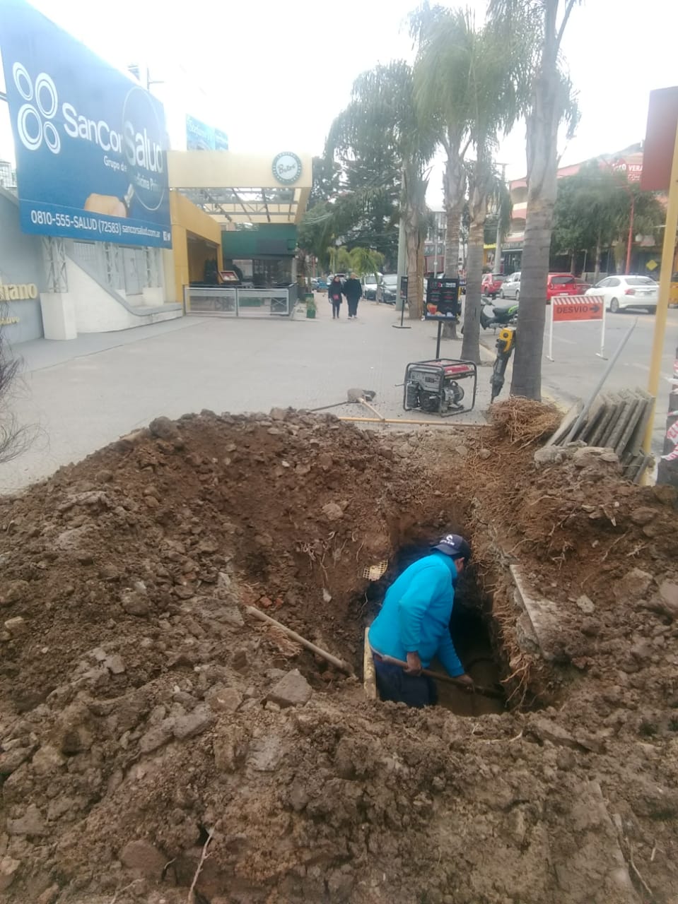 El corte se debió a la rotura de un caño de transporte de grandes dimensiones, 250mm que abastece a la zona del centro y Villa Domínguez.
