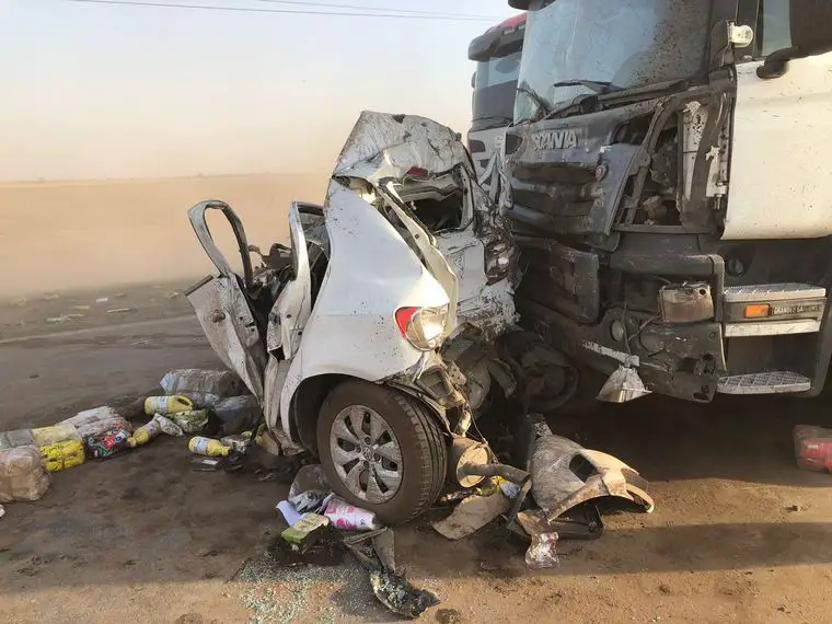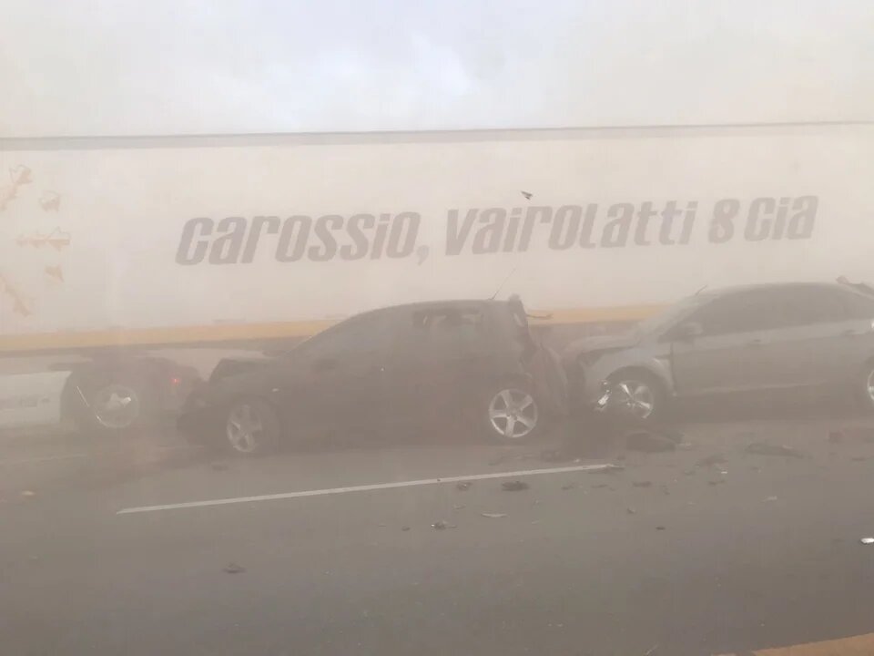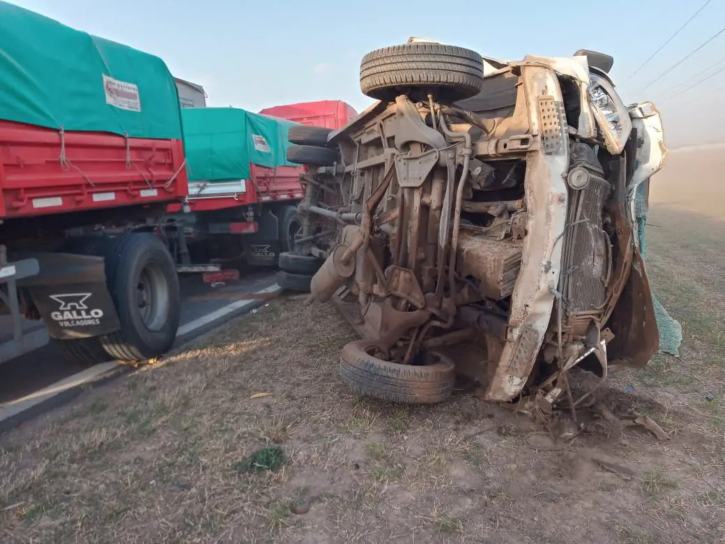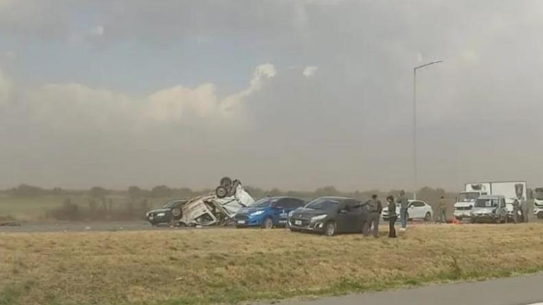 Allí un camión embistió y aplastó a un automóvil Volkswagen blanco, aunque también aparecen otros vehículos involucrados. Hay al menos cuatro personas heridas.
