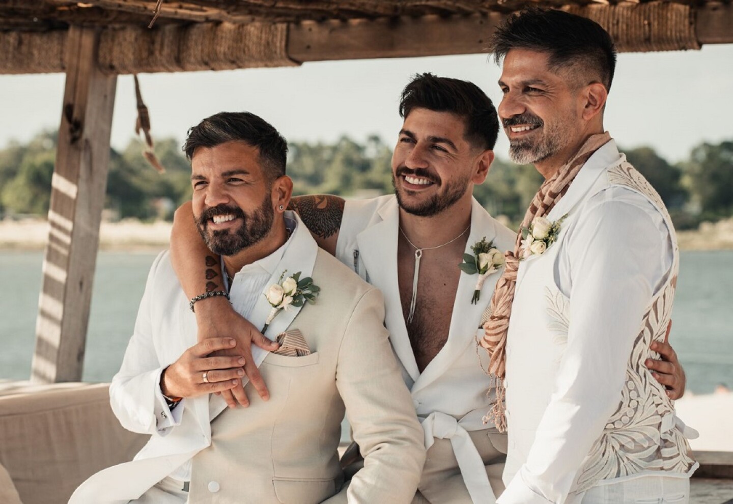 Maximiliano Adoue, Guillermo Mendizábal y Guillermo Picart,son los novios quienes estuvieron vestidos por el diseñador Marcelo Roggia.
