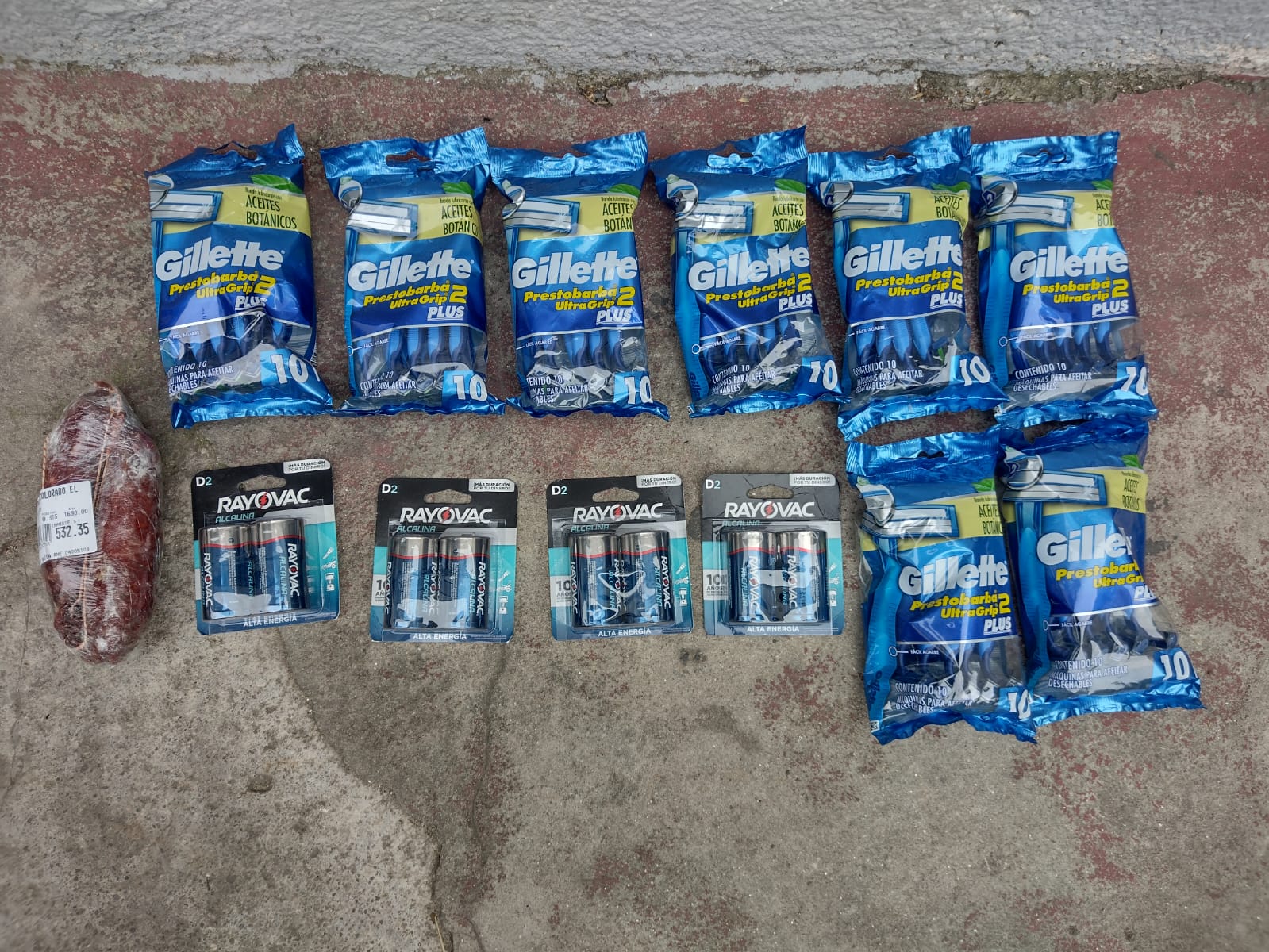 La Policía detuvo al hombre de 48 años y secuestó 8 paquetes de máquinas de afeitar, 4 de pilas y un salame.