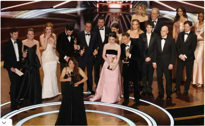 La velada tuvo a Conan O’Brien como maestro de ceremonia y una decepción: el film Emilia Pérez, que tuvo 13 nominaciones, pero sólo ganó dos: Mejor Actriz de Reparto con Zoe Saldaña y Mejor Canción Original, “El Mal”, de Clement Ducol, Camille y Jacques Audiard.