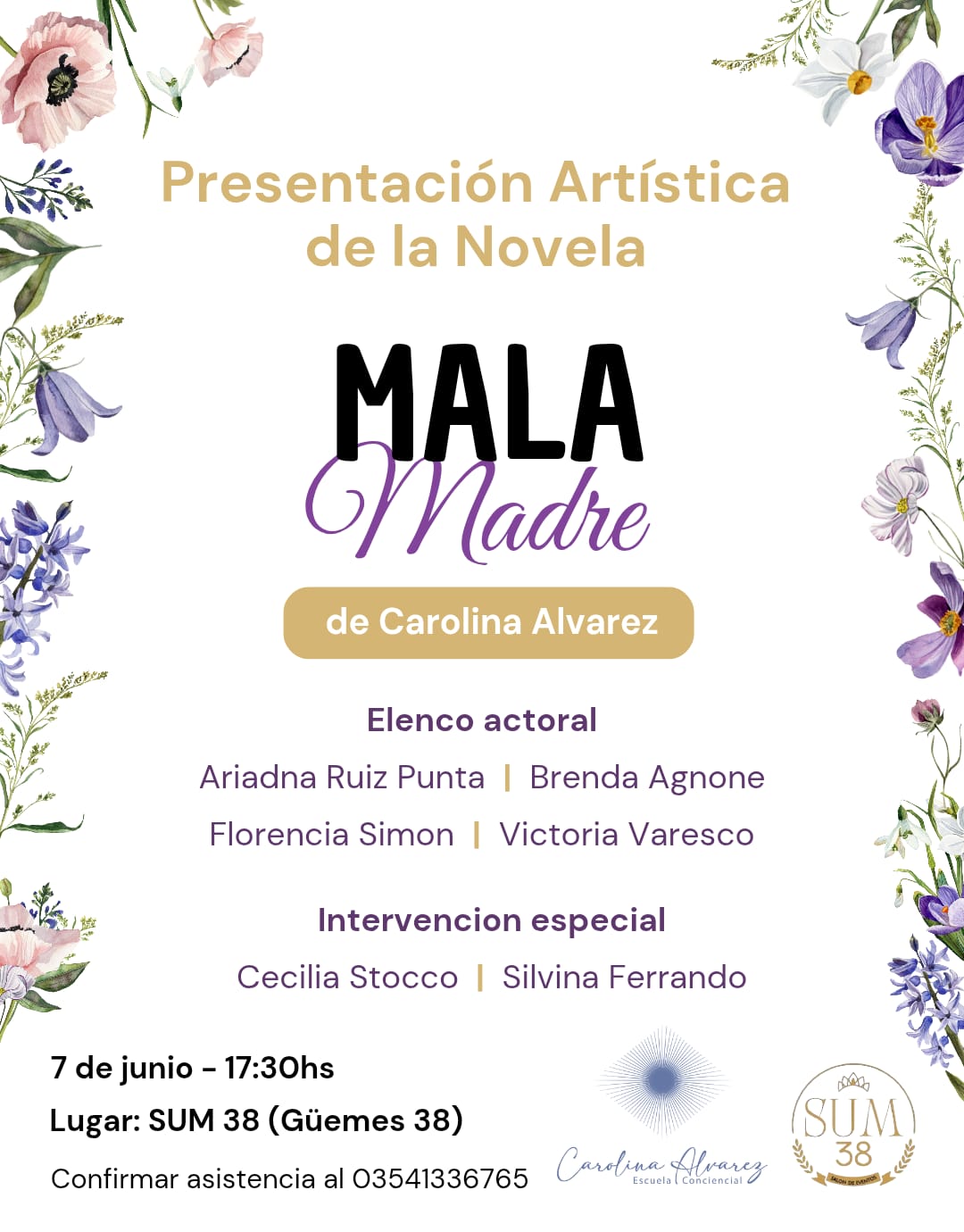 El próximo 7 de junio a las 17:30, se llevará a cabo en Villa Carlos Paz la presentación artística de la novela «Mala Madre», obra de Carolina Álvarez, que propone una mirada íntima y conmovedora sobre la maternidad desde una perspectiva contemporánea y sin filtros.