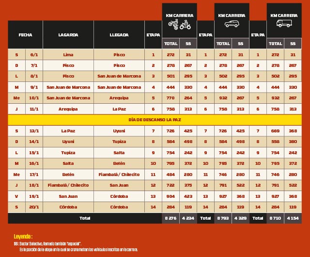 El 6 de enero el rugir de los motores se harán eco en Lima (Perú) y se extendrá hasta  el sábado 20 del mismo, cuando en Córdoba todos los flashes se posen ante los ganadores de cada categoría. El cierre de la competencia será en el Centro Cívico de Córdoba Capital.