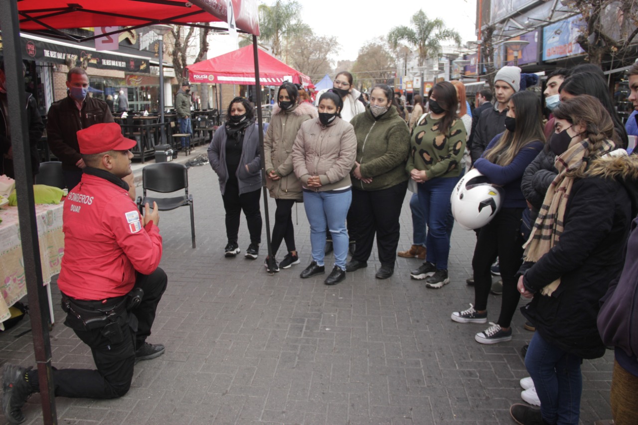 Este jueves a la mañana, el centro de Villa Carlos Paz estuvo intervenido por las distintas fuerzas que actúan ante emergencias, para brindar una capacitación intensiva sobre primeros auxilios a trabajadores de los comercios.