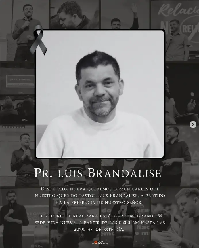 Los restos del pastor Luis Octavio Brandalise son velados en la iglesia Vida Nueva en la calle El Algarrobo Grande 54, en Villa Independencia, Carlos Paz.