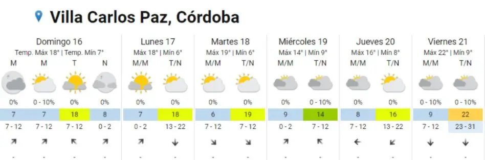 Pronóstico del tiempo para el Día del Padre en Carlos Paz y alrededores
