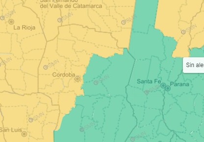 El ente oficial del clima también emitió un alerta por fuertes vientos para todo el oeste y norte de la provincia para la tarde de este martes. Se esperan vientos del sector sur con velocidades entre 35 a 45 km/h y ráfagas que podrían alcanzar los 70 km/h.