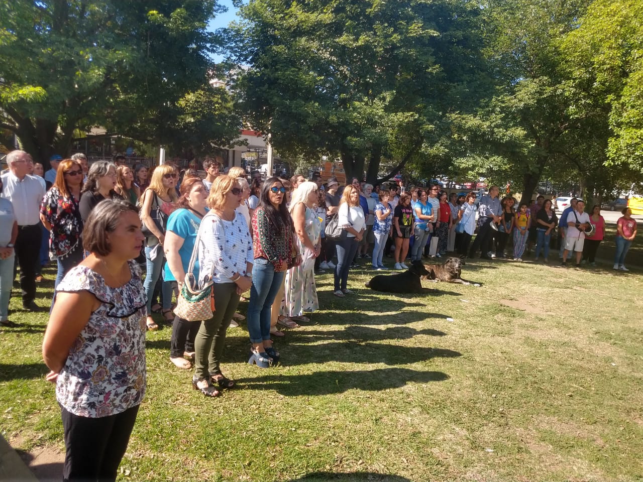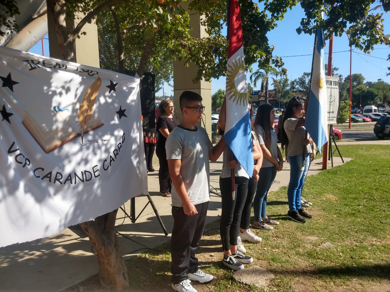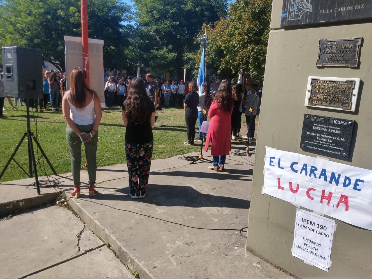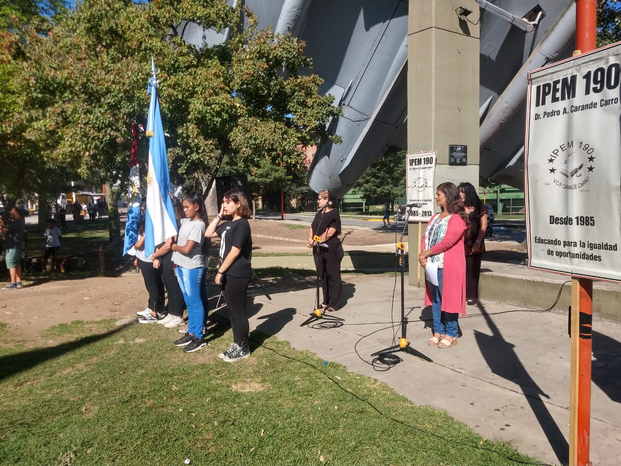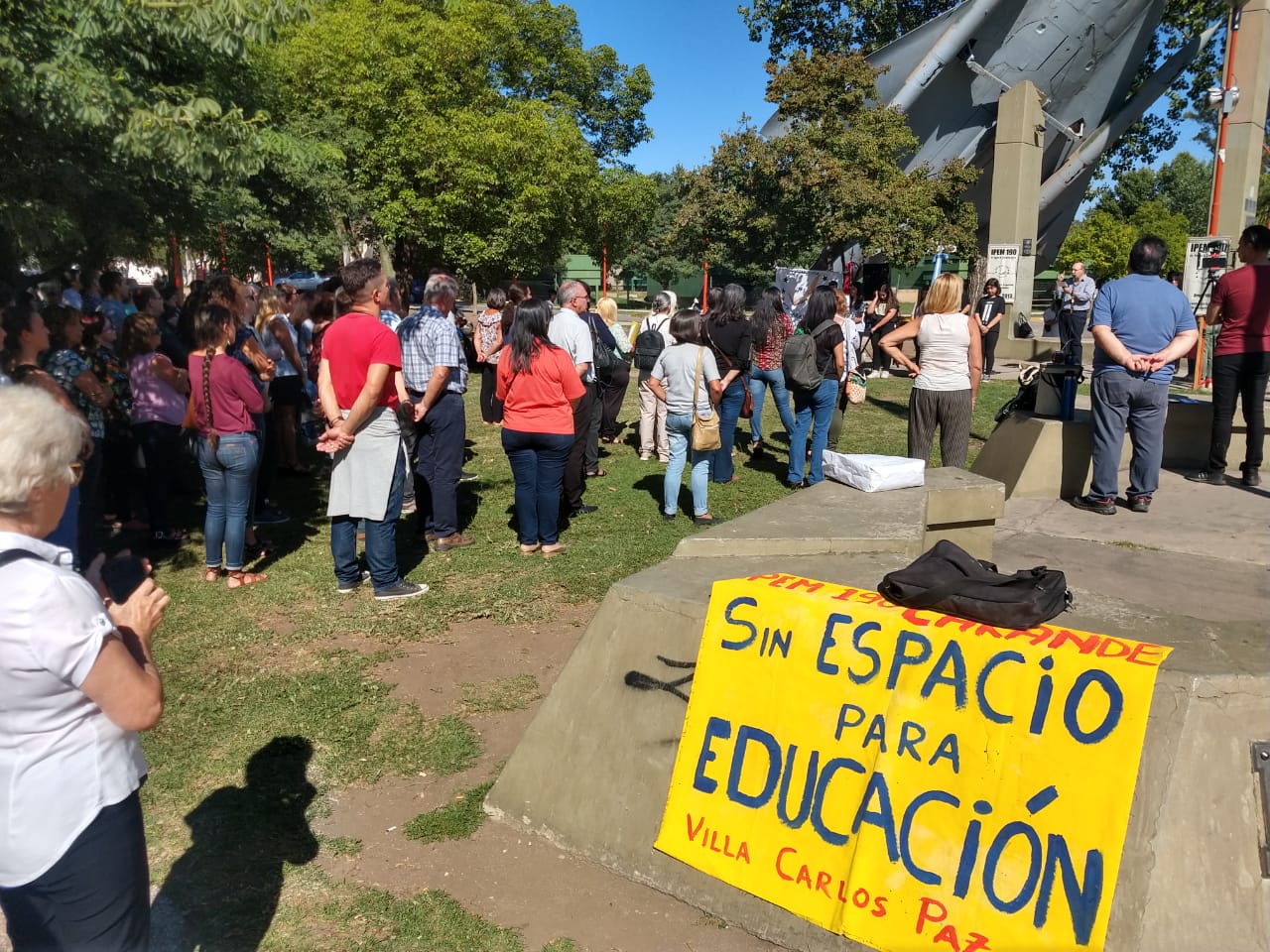 Llegó el día del inicio lectivo 2020 y, por falta de un edificio, la comunidad educativa del IPEM N° 190 Carande Carro, decidió comenzar las clases en la Plaza del Avión.