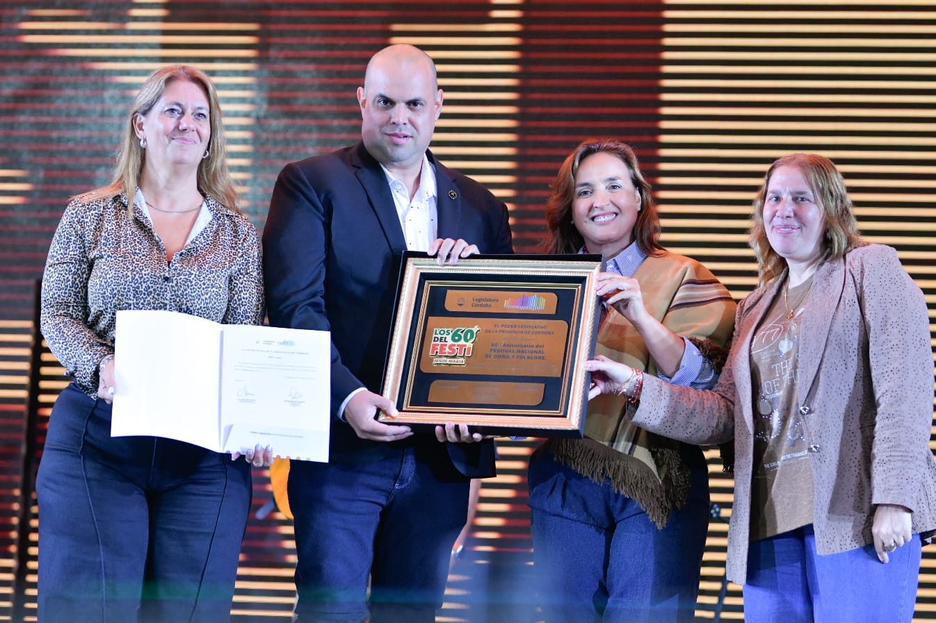 Durante el acto protocolar, Prunotto hizo entrega de un beneplácito de la Legislatura de Córdoba a la Comisión Organizadora del Festival, en reconocimiento a su trayectoria y al aporte permanente a la identidad cultural cordobesa. Además, otorgó un aporte económico de 524 millones de pesos, destinado al fortalecimiento y desarrollo de esta tradicional fiesta popular.