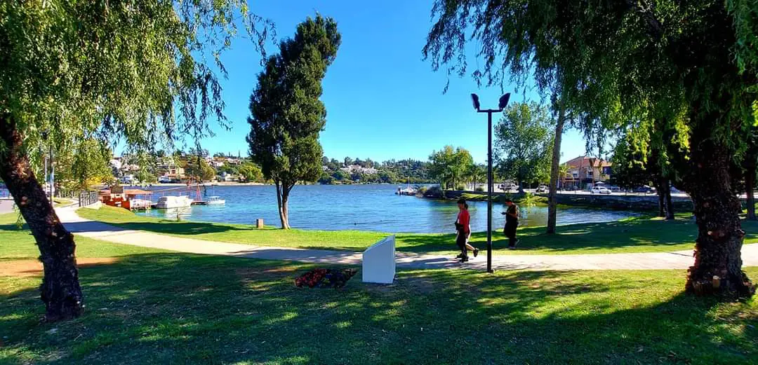 La sinuosa costanera Arturo Illia, tiene mil recovecos de ensueño… pero este es muy especial por la vista cercana de Villa Suiza y Villa del Lago colgadas de la barranca del frente.