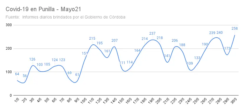 Este domingo se registraron 258 test positivos en el departamento Punilla, la cifra más alta del mes de mayo según el reporte del Ministerio de Salud de la Provincia.