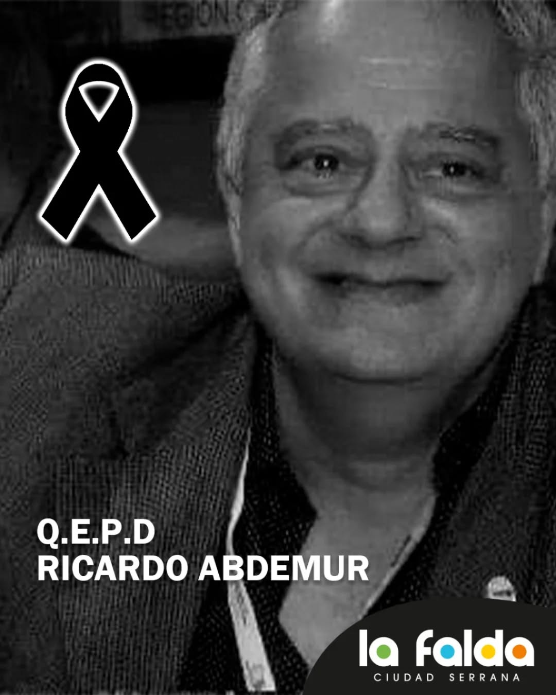 «La Municipalidad de La Falda lamenta con profundo dolor el fallecimiento de Ricardo Abdemur, destacado referente institucional y defensor de la industria hotelera, quien se desempeñaba como Presidente de la ASEHOGAP (filial FEHGRA).