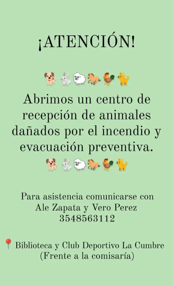 Para afrontar esta situación y atenderlos con profesionales, Ipad de Carlos Paz, asociación protectora de animales desamparados, publicó números de profesionales a los cuales se puede recurrir en caso de tener o conocer algún pequeño animal afectado por el incendio.