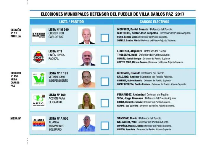 El domingo 25 de junio, Carlos Paz votará por segunda para definir quién ocupará el cargo de Ombudsman local.