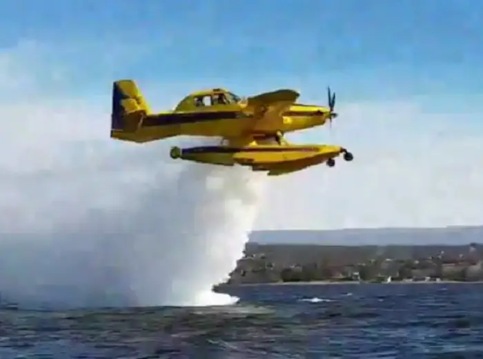 Luego 13 horas de este miércoles, un avión hidrante perteneciente al Plan Provincial de Manejo del Fuego comenzó a sobrevolar Villa Carlos Paz y bajó al lago San Roque a cargar agua.