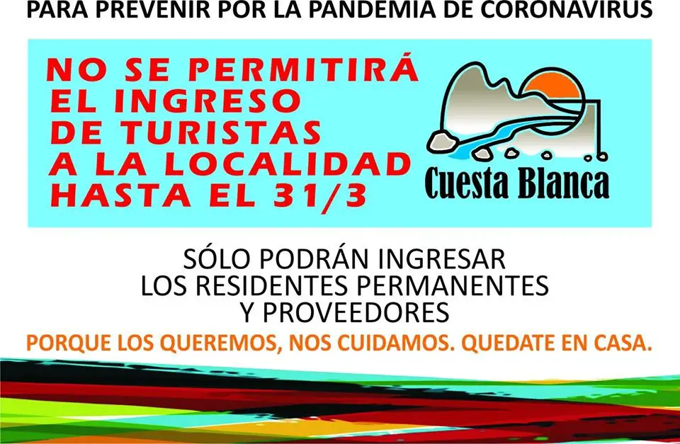 Cuesta Blanca es otra de las comunas que se sumó al cierre del paso a los turistas que pretendan llegar el fin de semana largo. La veda es hasta el 31 de marzo y solo podrán entrar residentes y proveedores.