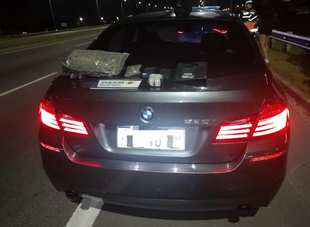 La investigación se precipitó durante la madrugada cuando el personal policial logró interceptar un automóvil de alta gama, marca BMW, que circulaba por el anillo externo de la Avenida Circunvalación a la altura del kilómetro 42.
