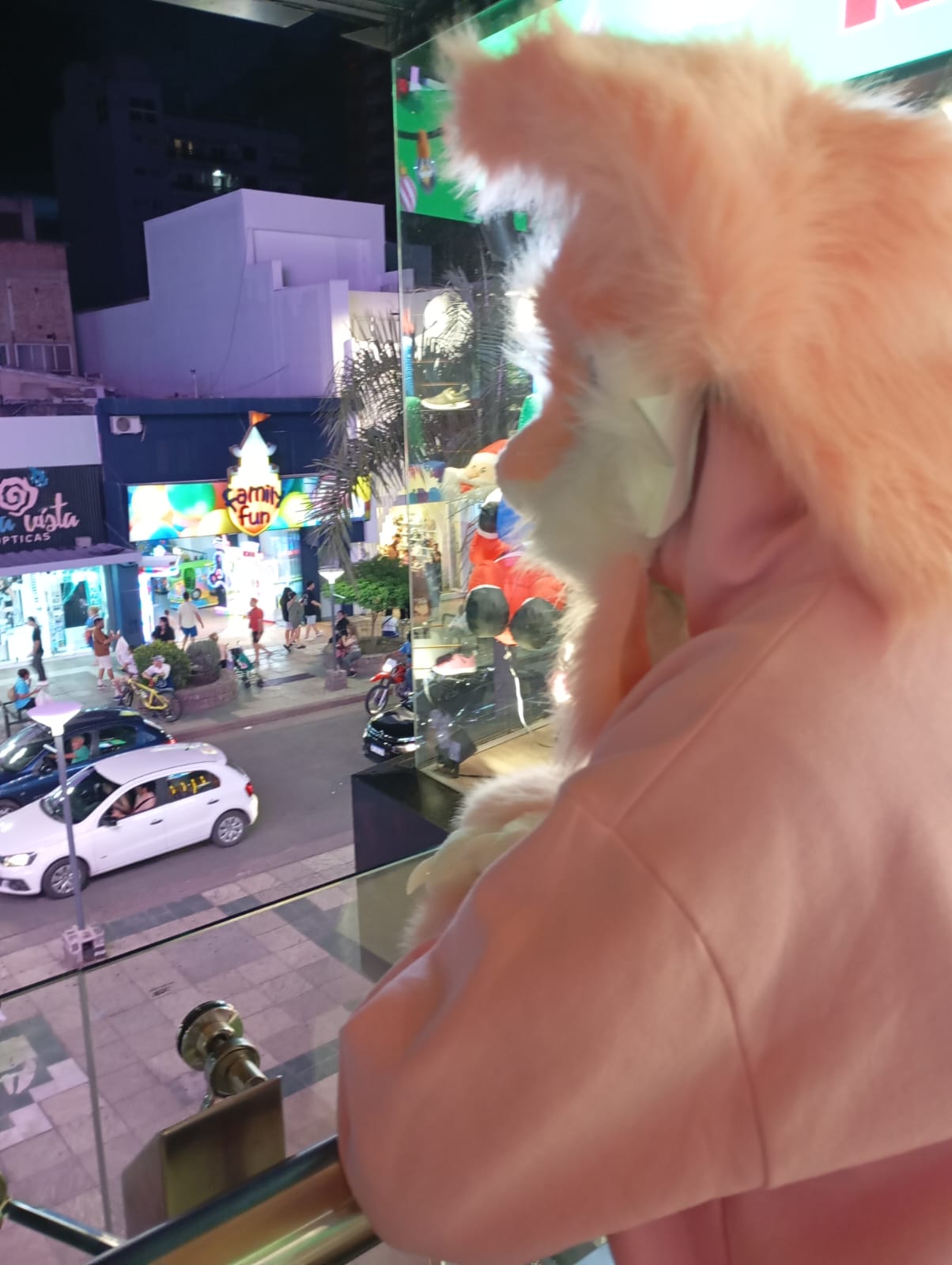 En las últimas semanas, vecinos de Villa Carlos Paz comenzaron a compartir imágenes de un personaje con una máscara de zorro rosa, de mirada gigante y sonrisa permanente, que deambula por el centro y los barrios del sur de la ciudad.