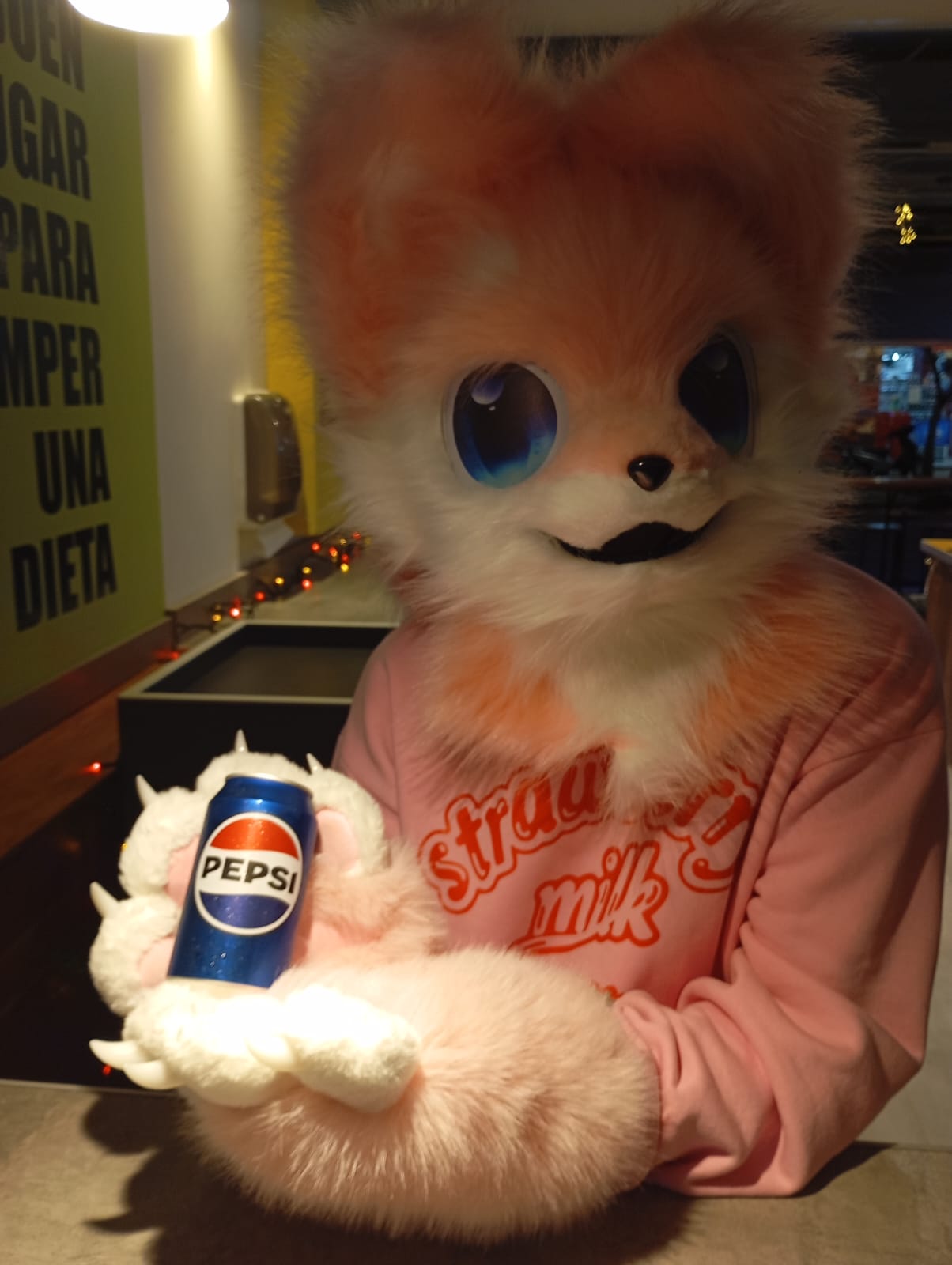 “No soy therian son un furro o furry, represento un personaje ficticio llamado Cerise”, explicó al comenzar la charla. Se trata de una invención propia, surgida primero como un dibujo en papel y luego llevada al plano físico con un disfraz que él mismo adaptó a su diseño.