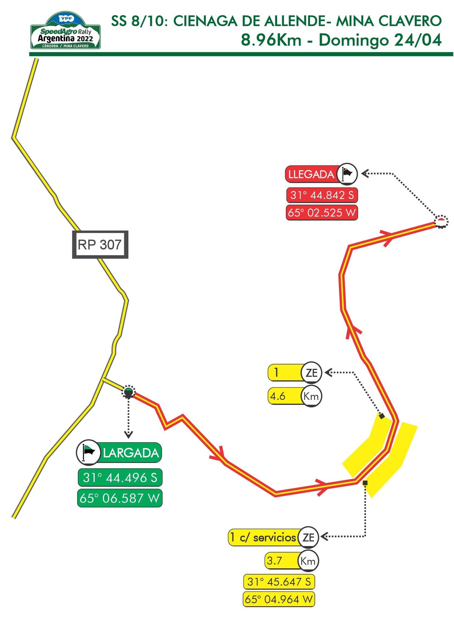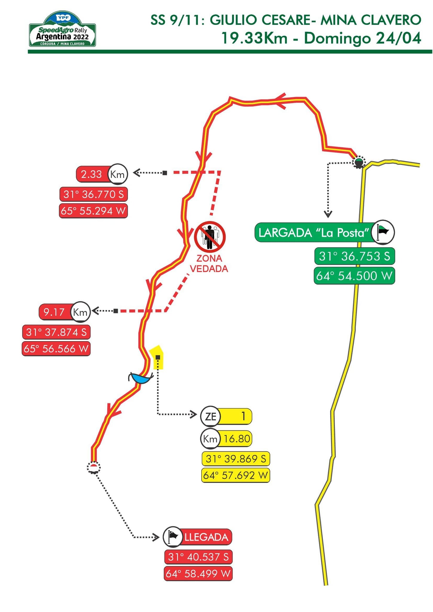 El domingo también pasarán los autos dos veces por cada tramo: Ciénaga de Allende – Mina Clavero (8,96 km) y a continuación la clásica bajada desde Giulio Cesare hacia la Capital Nacional del Rally, que en esta oportunidad tendrá un recorrido cronometrado de 19,33 Km, con la largada del primer auto a las 10.13 hs.