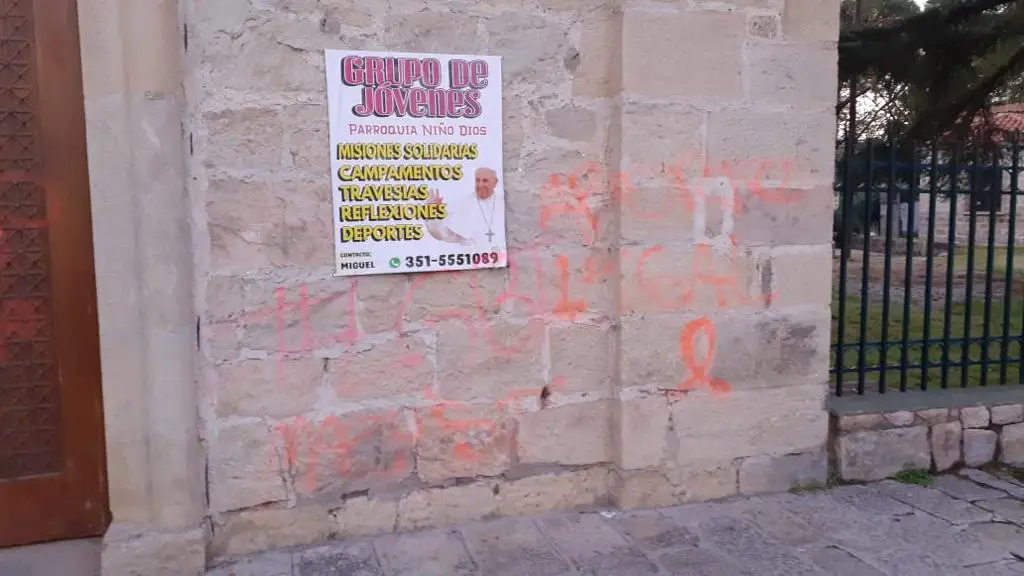 Las cámaras de seguridad detectaron a un grupo de jóvenes que realizo la pintadas de la fachada de la iglesia y parte del Instituto Bernardo D’elia