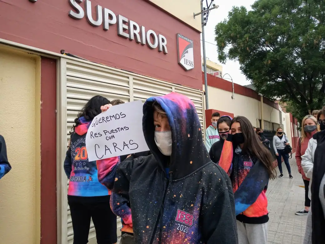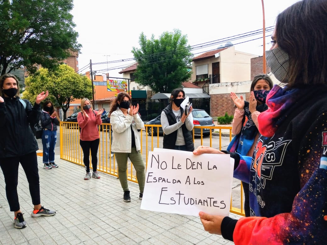 La intención fue expresar “la disconformidad ante la resolución de parte del Consejo Directivo del IES, que rechaza hacer los actos de manera presencial, a pesar de haber sido aprobado el protocolo”, señaló en nombre del grupo, Virginia González, una de las mamás que estaba reclamando.