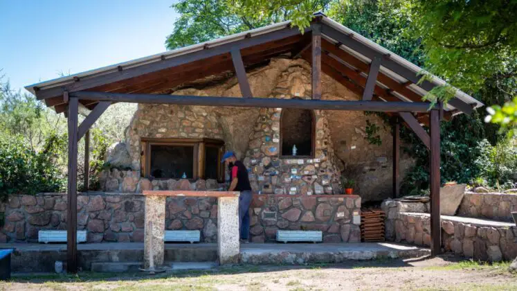 En colaboración conjunta entre el municipio y habitantes de Capilla del Monte, avanza la reconstrucción de la Gruta vandalizada el pasado mes de enero.