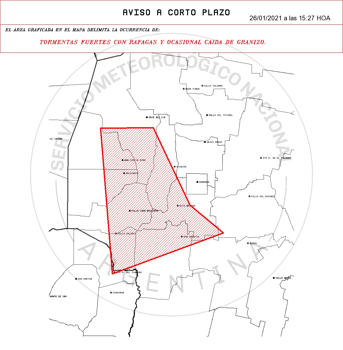 El Servicio Meteorológico Nacional emitió un “Aviso a corto plazo” por tormentas fuertes con ráfagas y ocasional caída de granizo para la tarde de este martes.
