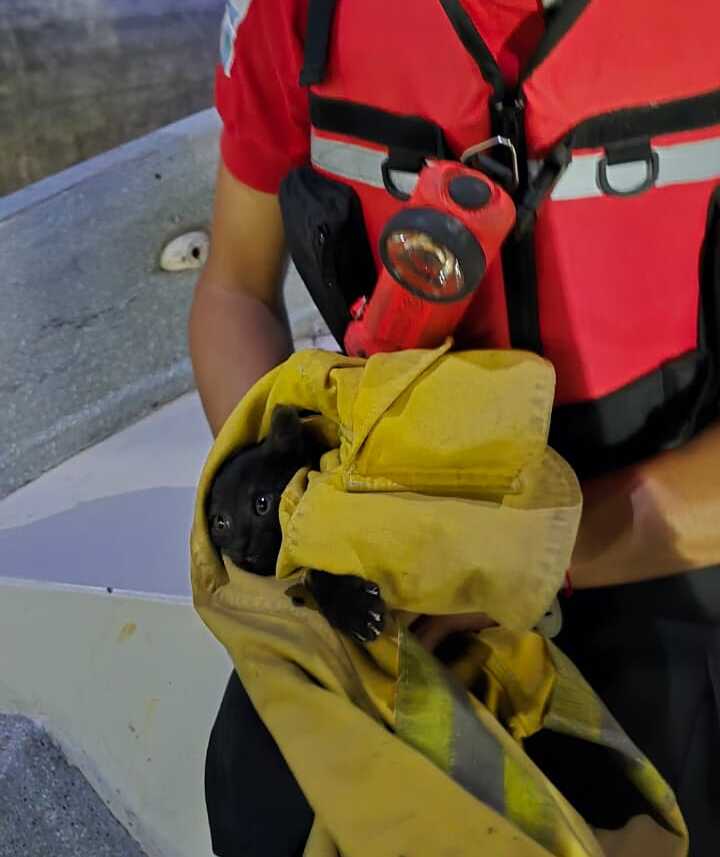 Alrededor de las 21:30 horas, el personal especializado fue alertado sobre la presencia de un gato cachorro que, tras un descuido, había caído al costado del vertedero del dique. Debido a la inclinación del terreno y la estructura del embudo, el animal quedó atrapado en una saliente, imposibilitado de trepar para regresar a la superficie.