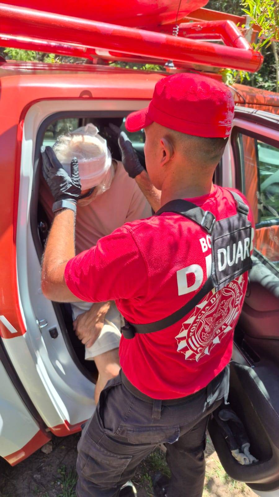 El operativo se llevó adelante alrededor de las 12:50 horas, cuando personal del Destacamento Duarte – Sierra Chica, perteneciente a la Dirección Bomberos, se trasladó hasta la Cascada de los Hornillos, ubicada sobre el camino a Colanchanga, tras recibir el alerta por una persona lesionada.