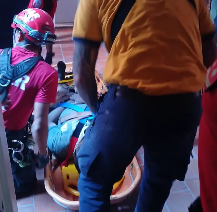 Allí, mediante técnicas adecuadas los policías extrajeron con camilla cesta a un hombre de 54 años que había caído al patio interno de un departamento.