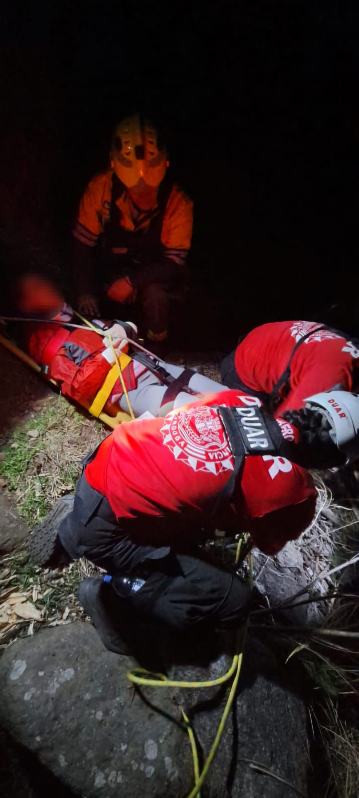 El equipo de rescatistas se hizo presente en el lugar y, tras un ascenso de 6900 metros, logró localizar a la mujer, quien presentaba una lesión en una de sus piernas. Utilizando técnicas adecuadas, el personal procedió a inmovilizarla y a evacuarla en una tabla raquis.