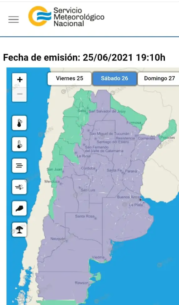 El alerta emitido por el Servicio Meteorológico Nacional comprende a la provincia de Córdoba, San Luis Buenos Aires, Santa Fe, La Pampa, Chubut, Río Negro, Neuquén, Chaco, Tucumán, Santiago del Estero, Entre Ríos, Corrientes, parte de Salta, Catamarca, San Juan y Mendoza