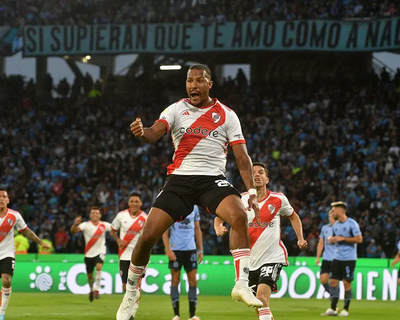 Los goles en la capital del cuarteto se hicieron esperar hasta el segundo tiempo. Fue el delantero venezolano de River quien con un cabezazo que venció la barrera del arquero Celeste, abrió el marcador a los 16 minutos del complemento.