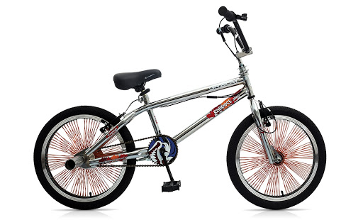 En cuanto a los rodados, se trata de una bicicleta de competición color naranja y otra de BMX plateada.