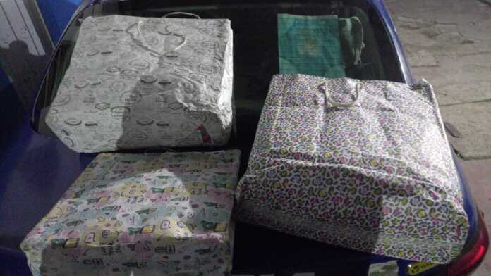 Luego se procedió al control de sus ocupantes, quienes llevaban 3 bolsas de papel cubiertas de aluminio para evitar las alarmas de prendas.