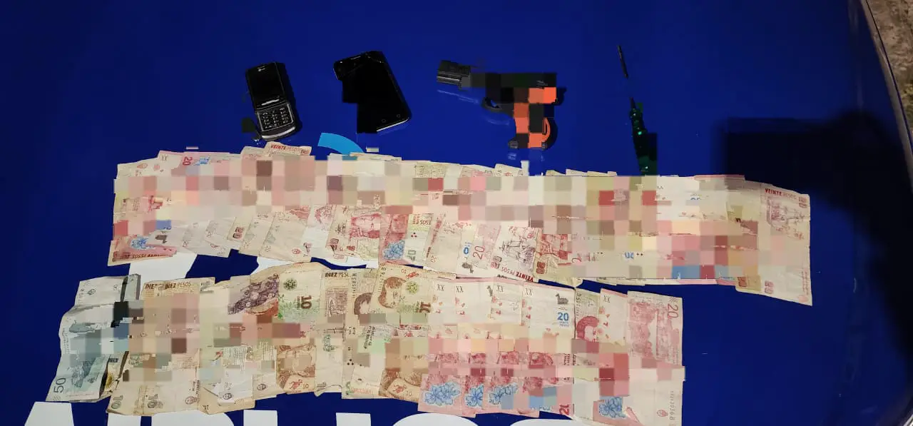 En la revisión, se constató que el sujeto llevaba una réplica de arma de fuego entre la ropa y se encontraron los elementos sustraídos del local.