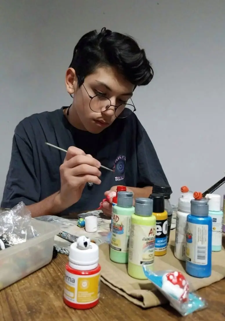 “Empezamos a pintar mates todos durante la pandemia, dado que estábamos sin trabajo. Era una actividad linda, y de paso ingresaba dinero. A Tiziano le gustaba eso, se sumaba a pintar y como vimos que tenía muchas habilidades le propusimos que él también hiciera algo para tener su propio dinero y que así pudiera colaborar con la familia. Le gustó la idea y empezó a hacer bijouterie, aros, dijes, etc. A eso lo vendimos en diferentes ámbitos y en redes sociales”, detalló el padre de Tiziano.