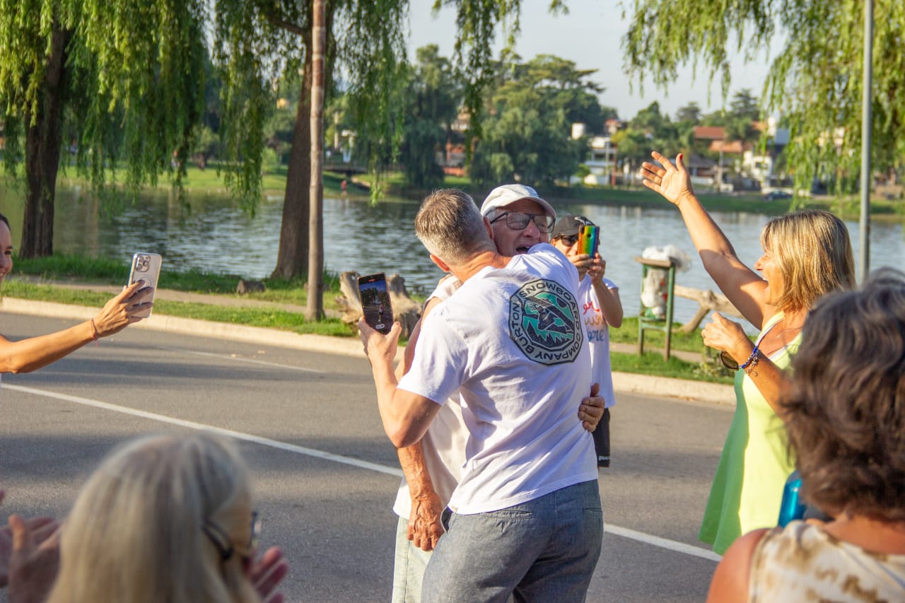 Caminaron desde el Club de Remo hasta el playón del Rally, ida y vuelta… emulando su caminata diaria, con cartelitos simpaticones y recibiendo saludos por doquier.