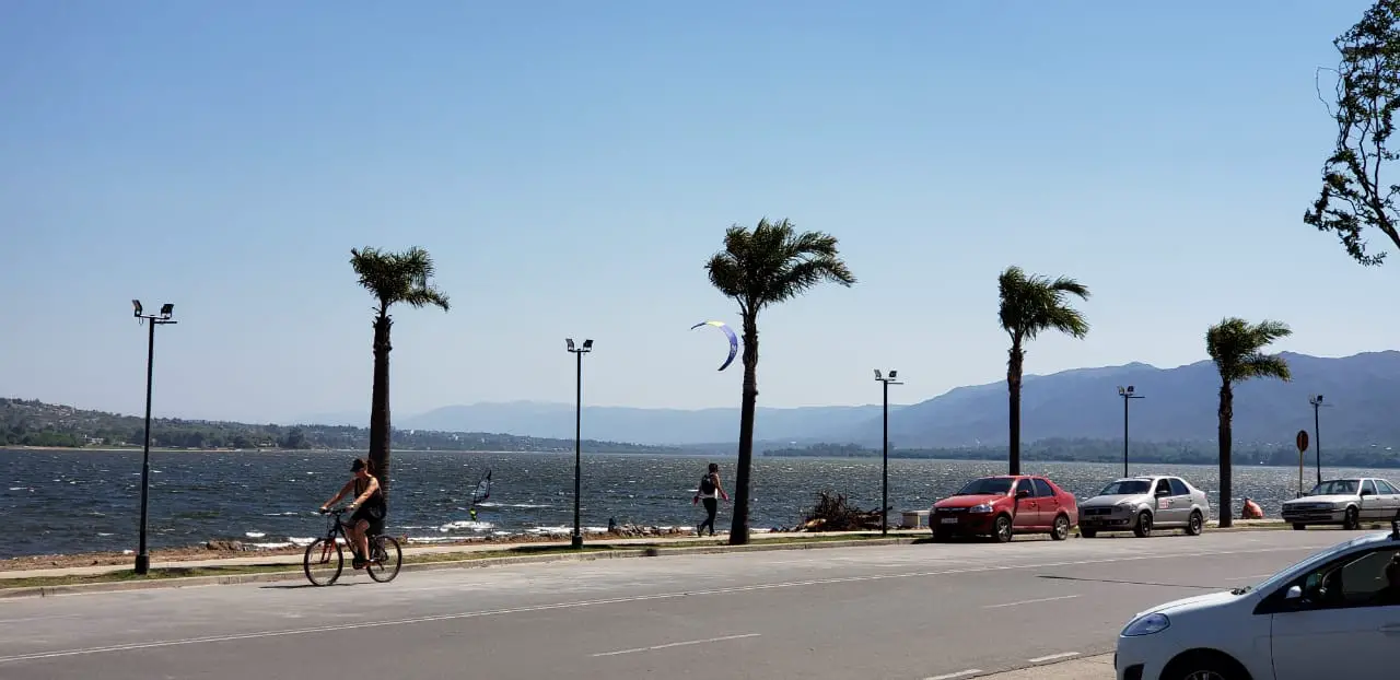 Durante la jornada, el viento complicó algunas actividades náuticas y deportivas en la costanera del lago San Roque.