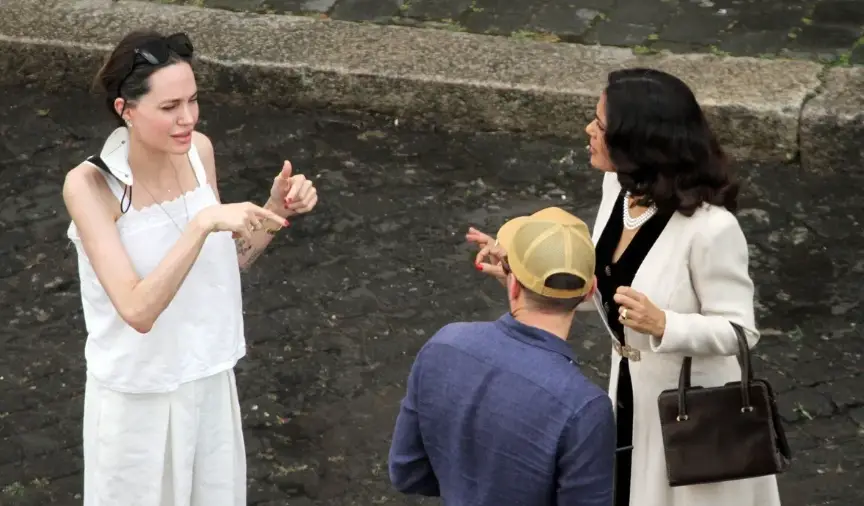 En las imágenes que trascendieron pueden verse a ambas mujeres durante el rodaje del film en Roma, Italia.