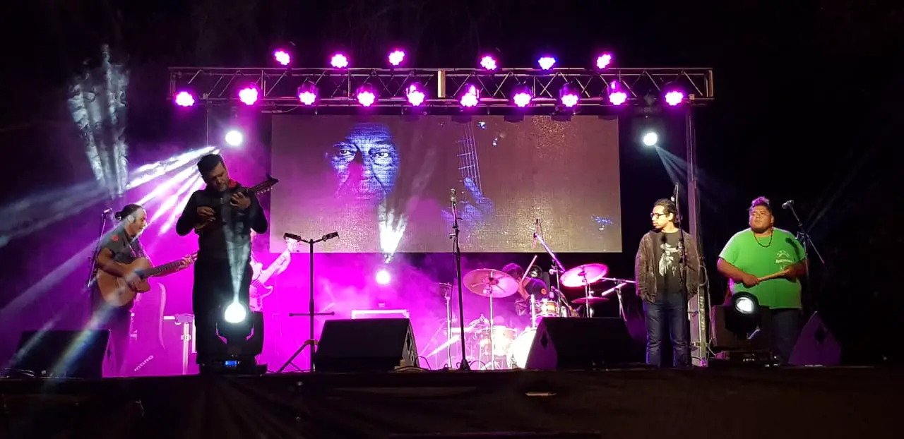 La actividad comenzó cuando el sol ya dejaba ver sus últimos rayos con el acto protocolar y la presencia de la bandera de la ciudad, para dar lugar luego al festival musical.