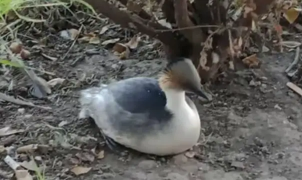 Se trata de un macá tobiano que fue hallado en pleno centro de san Francisco, Córdoba. La guardafauna Ernestina Saravia tras curarlo, lo liberará.